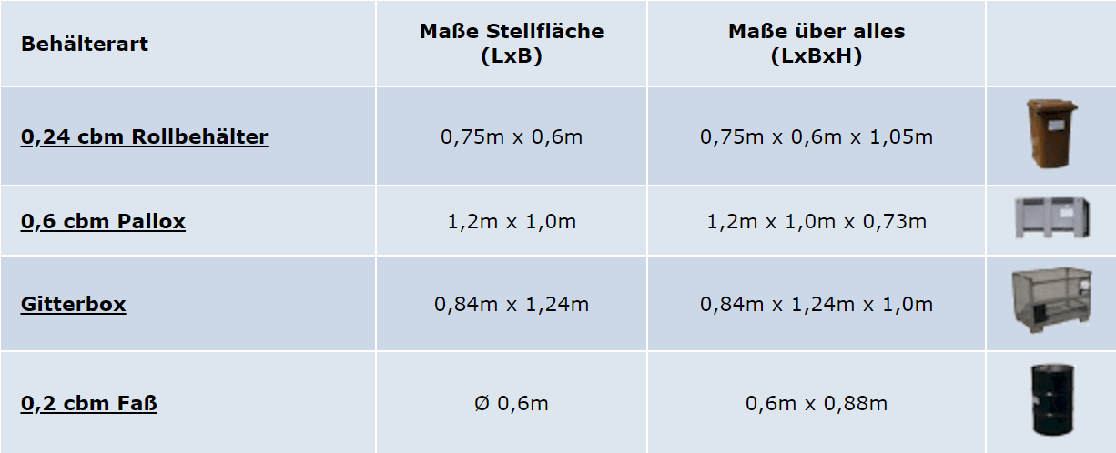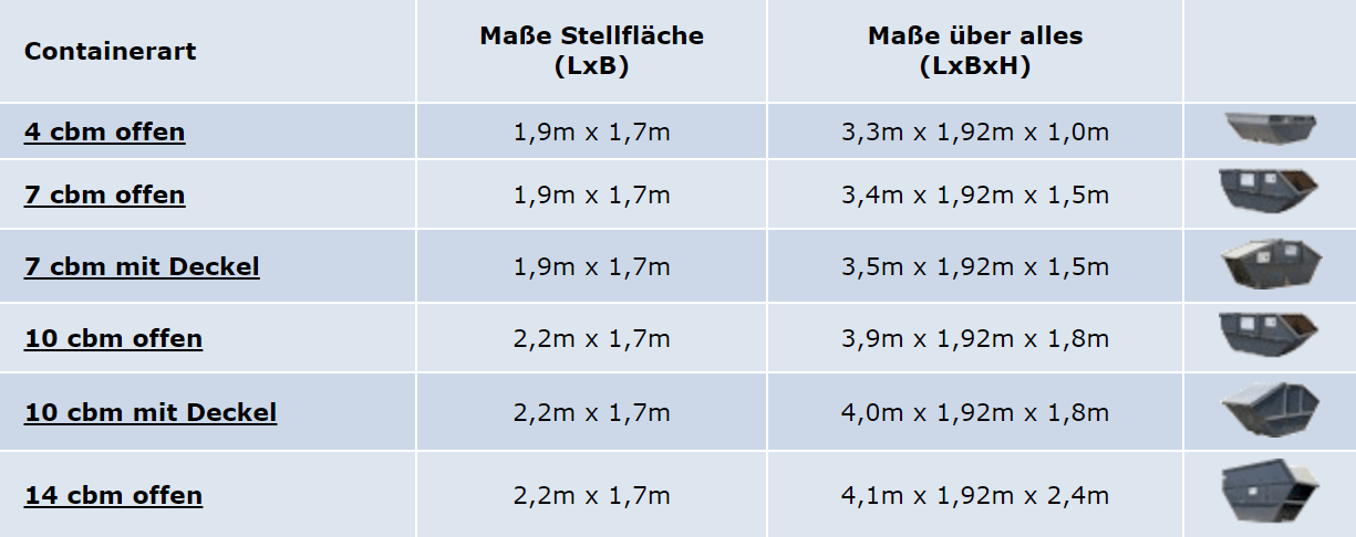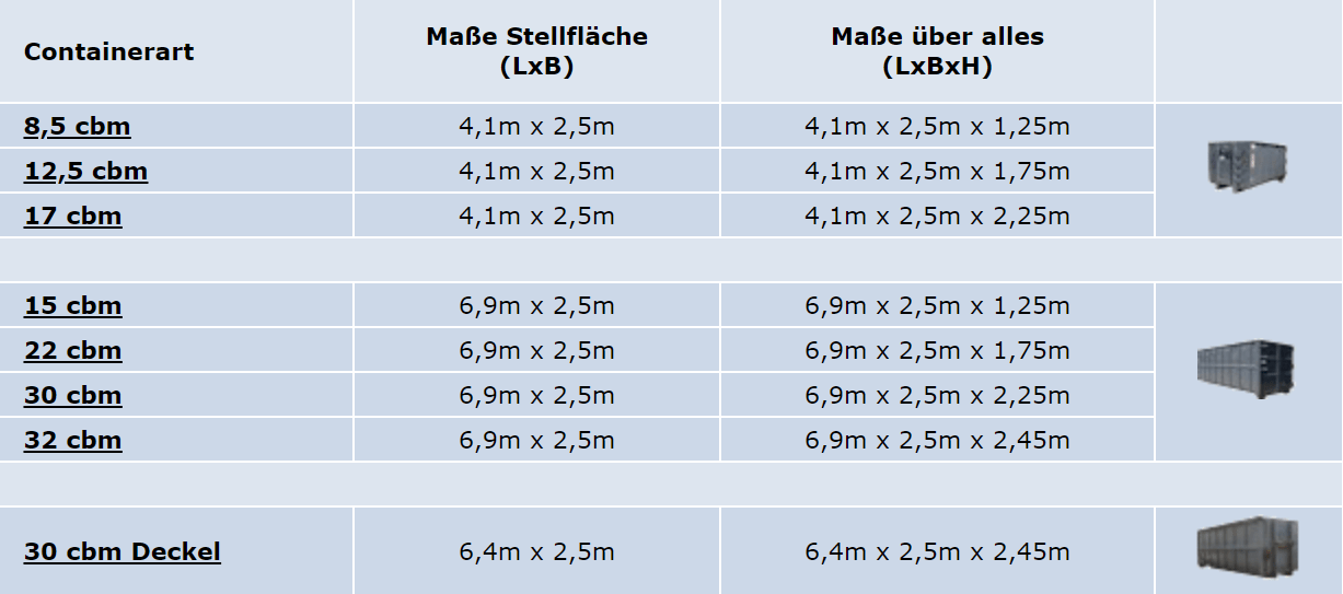 Wir halten deshalb eine Vielzahl von Containern bereit, die entsprechend den Kundenbedürfnissen ausgewählt und geliefert werden können.